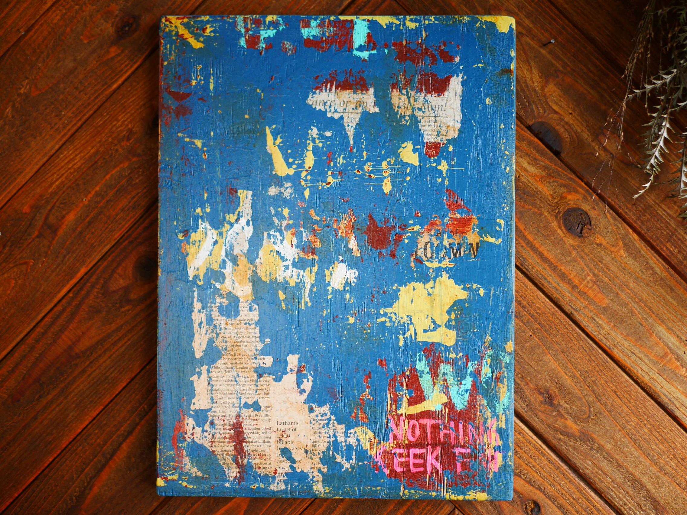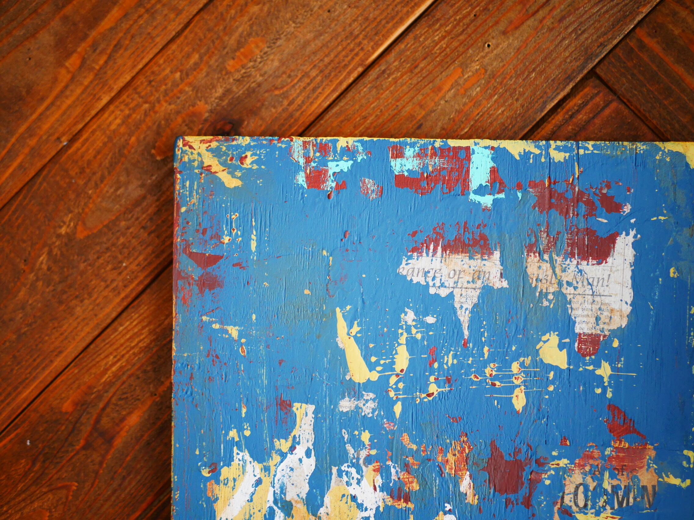 古い洋書などを貼り付けたり、エイジング加工、エイジングペイントを施しております。