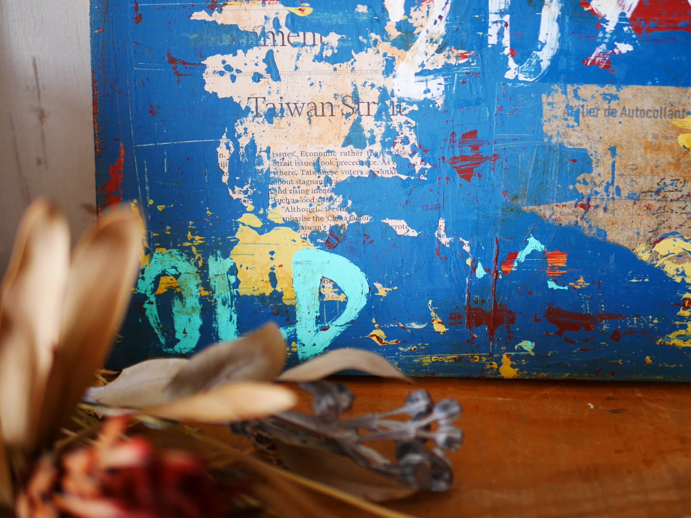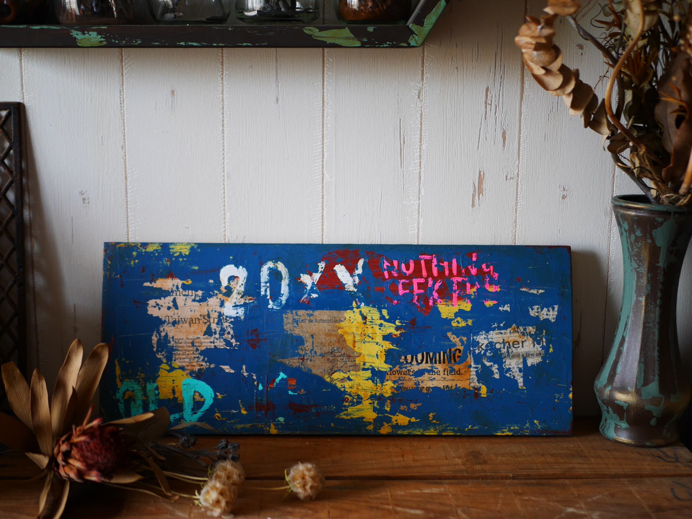 古い洋書などを貼り付けたり、エイジング加工、エイジングペイントを施しております。