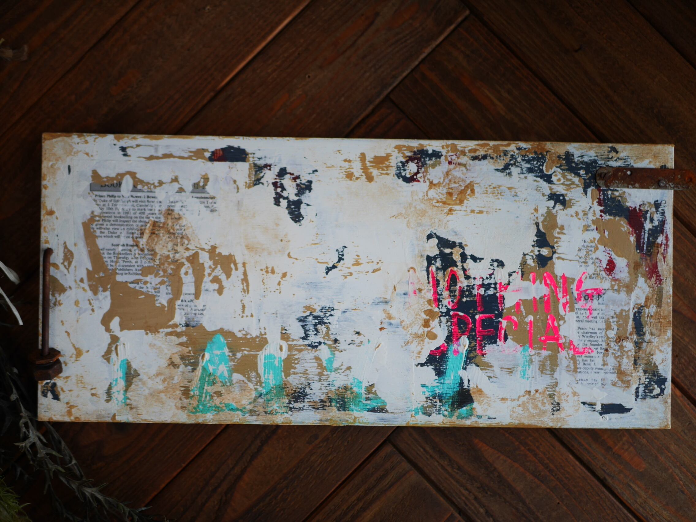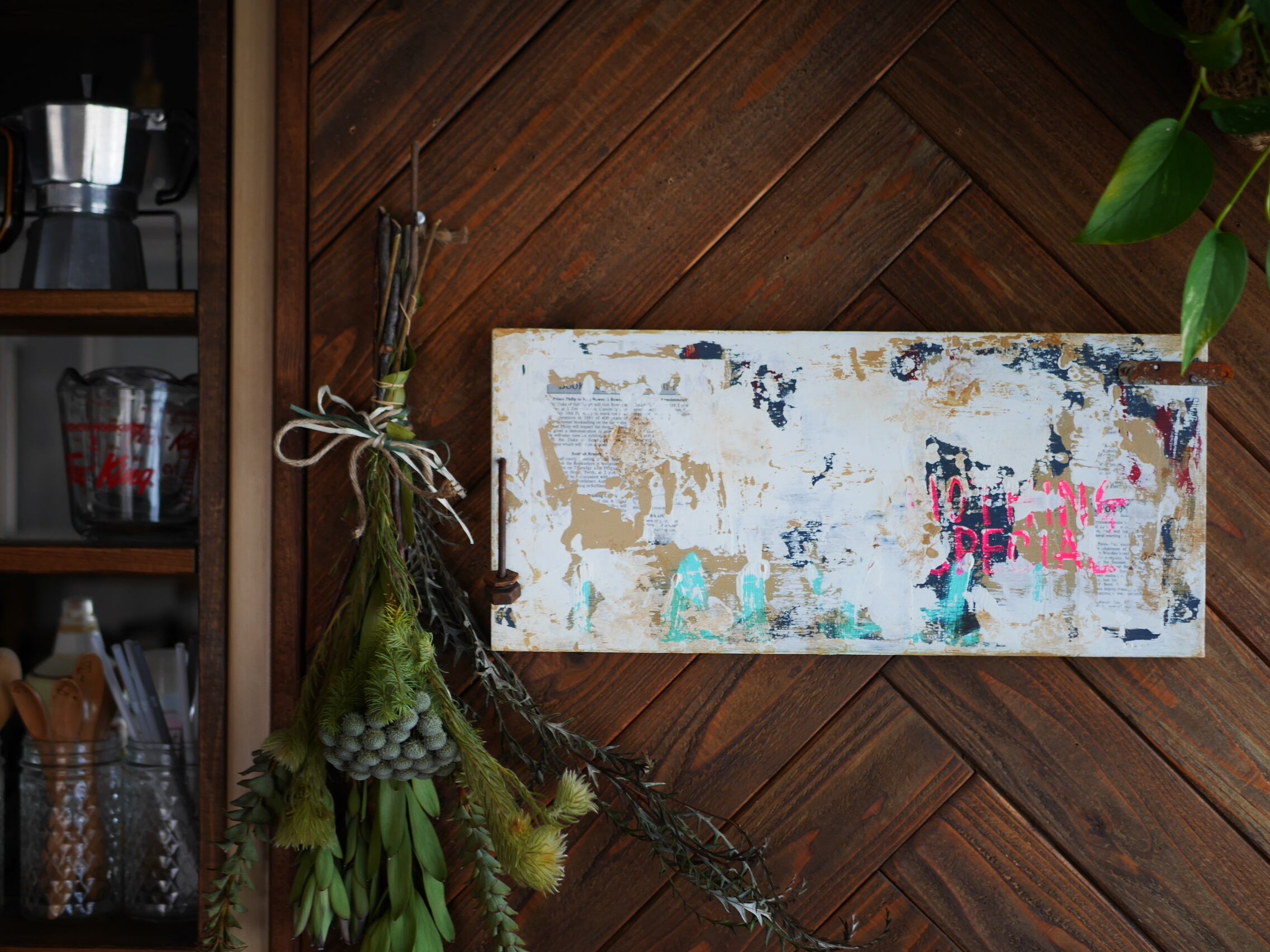 古い洋書などを貼り付けたり、エイジング加工、エイジングペイントを施しております。
